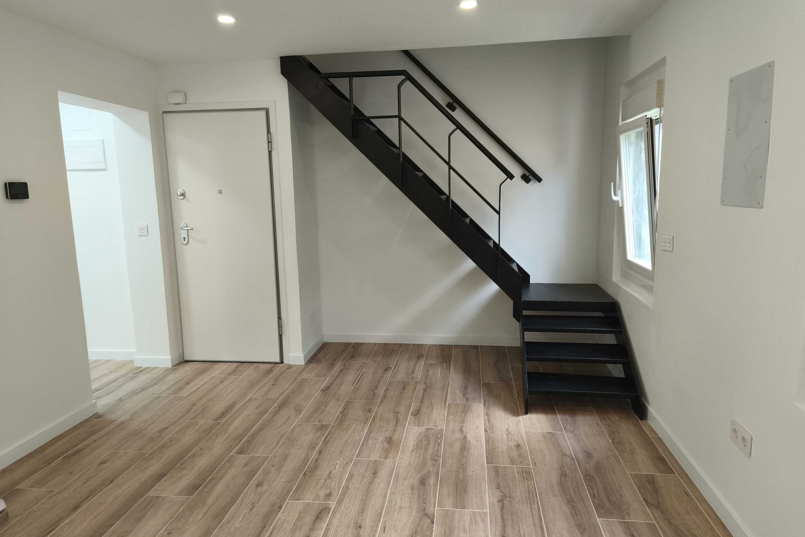 Instalación de escalera metálica en reforma de vivienda.
