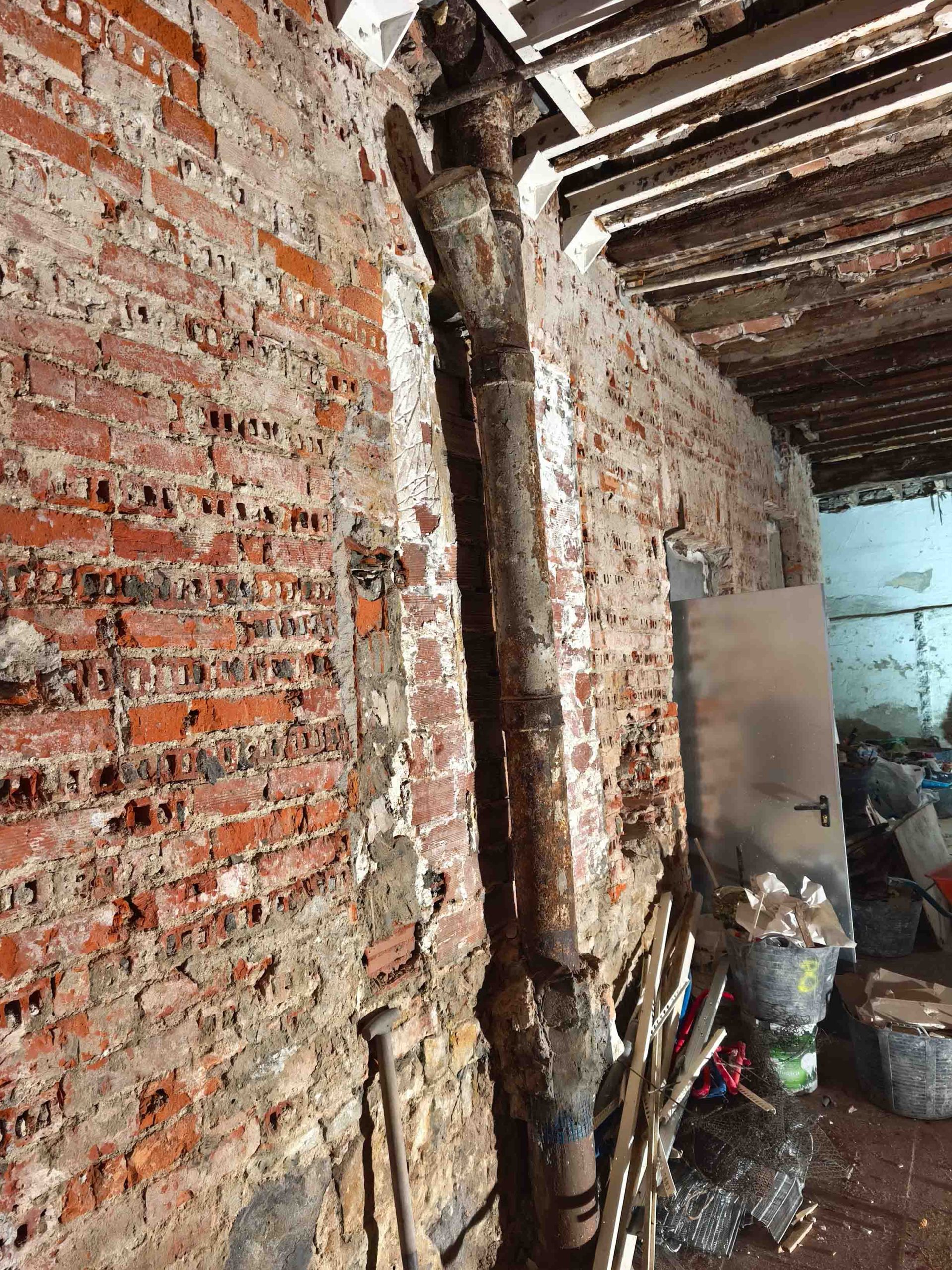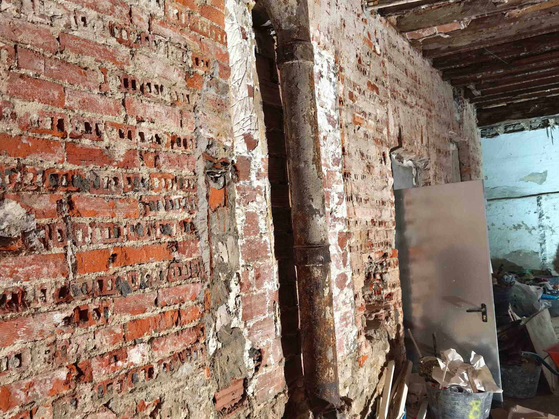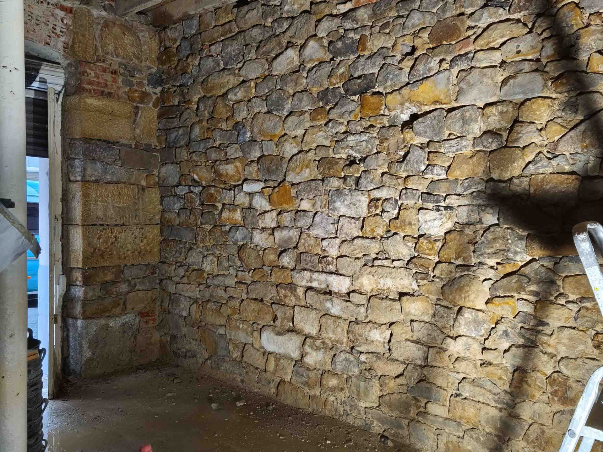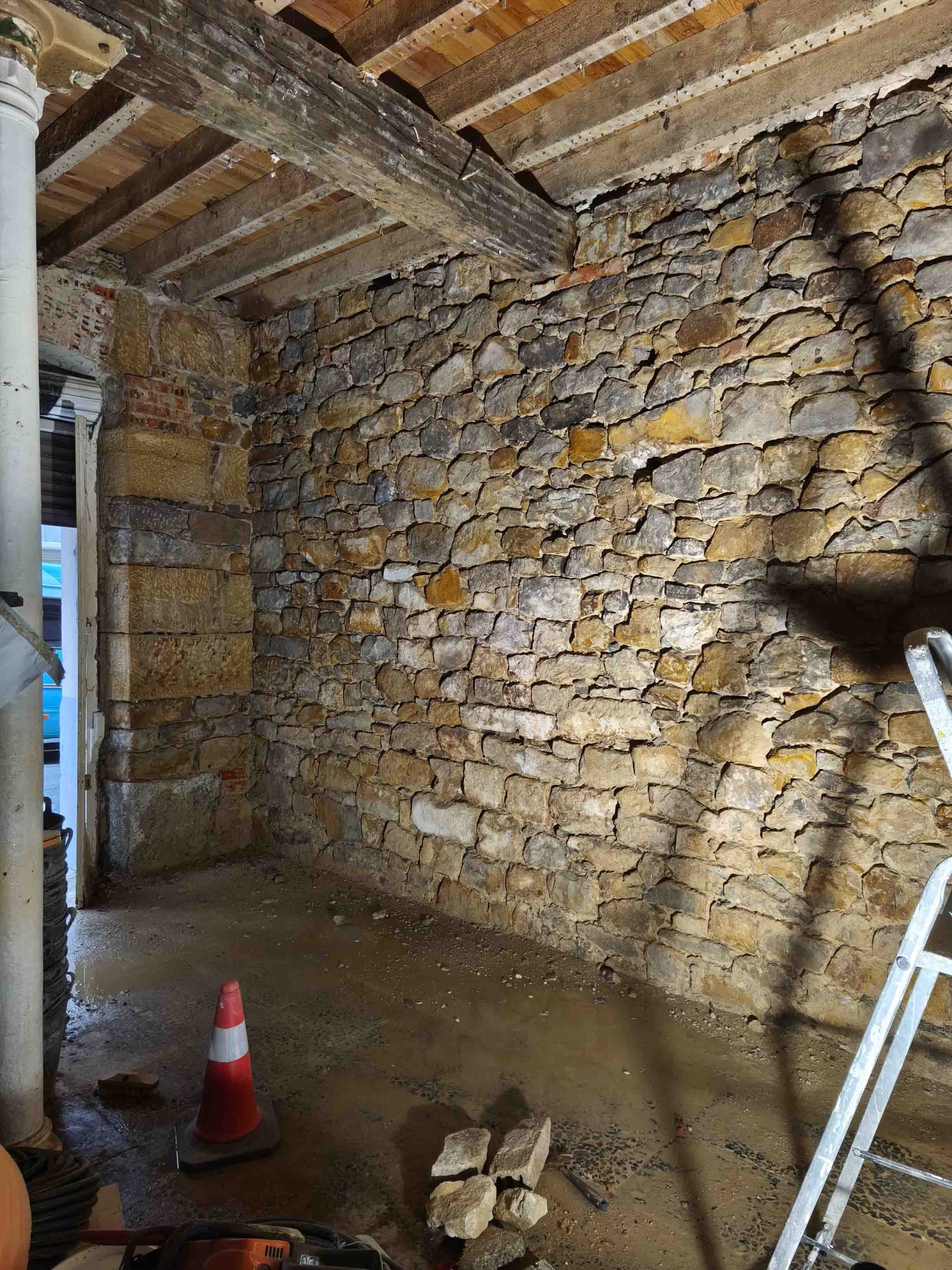 Adecuación integral de local comercial con intervención en fachada y estructura interior. Se ha realizado el desescombro, saneado de muros de piedra y ladrillo original, y preparación del espacio para una nueva distribución.