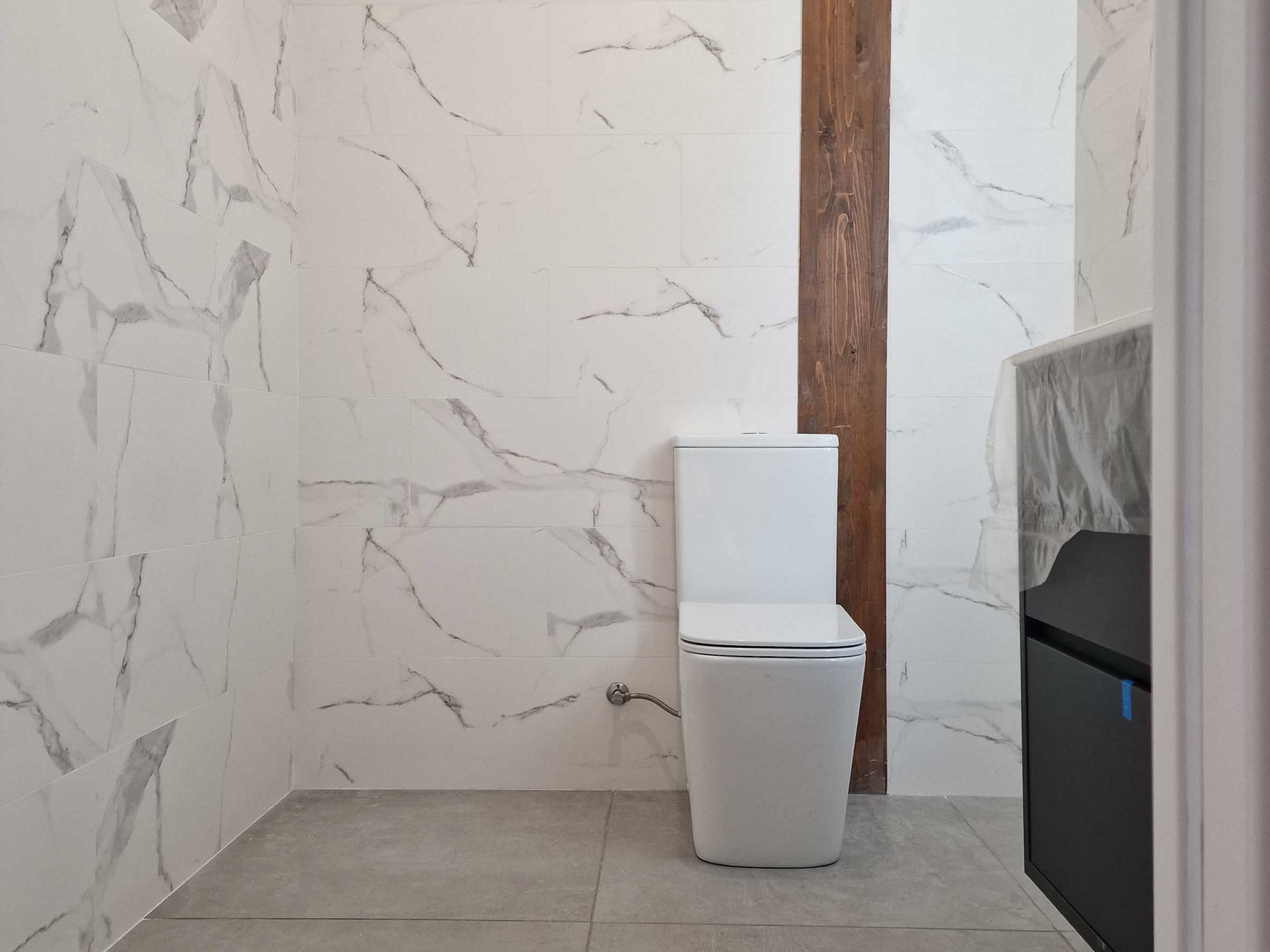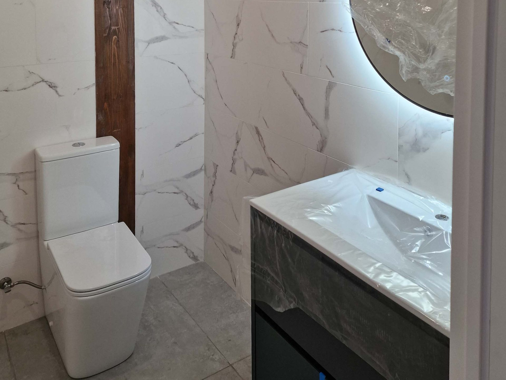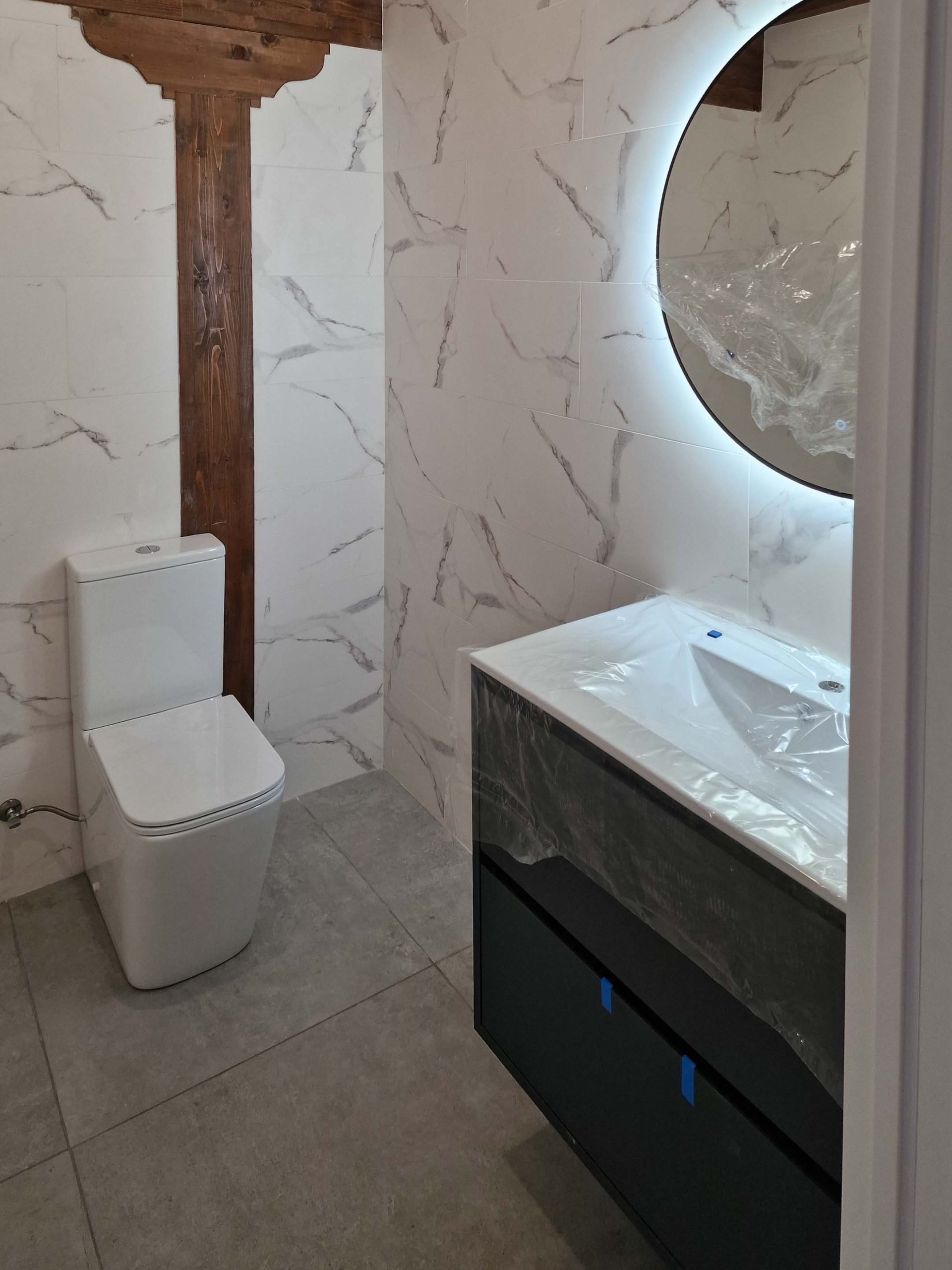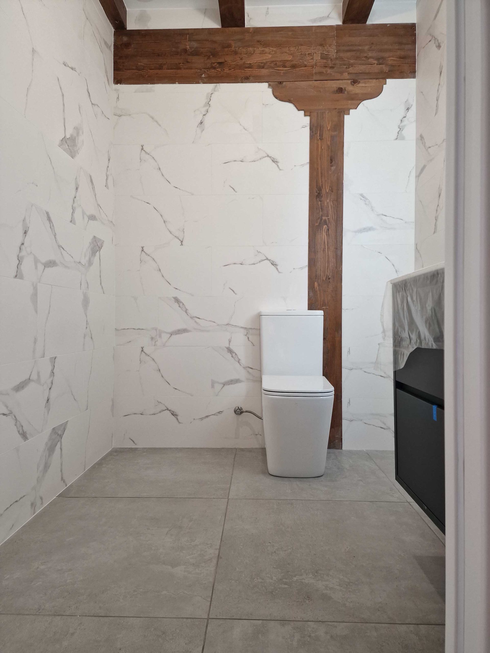 Reforma interior integral de baño con renovación completa de acabados y equipamiento, dando lugar a un espacio limpio, funcional y actualizado.