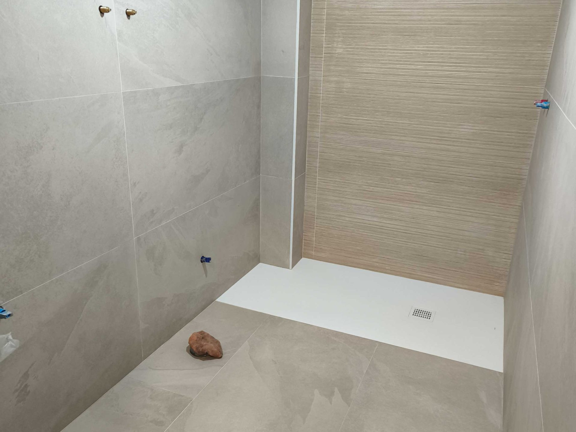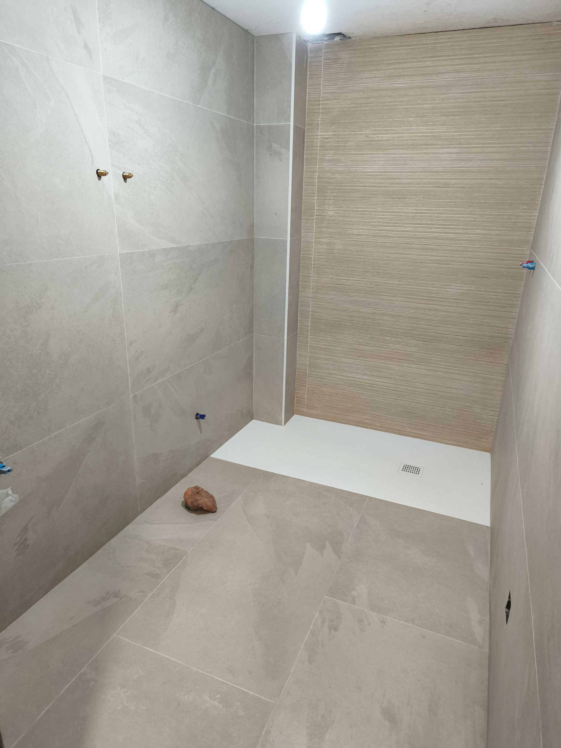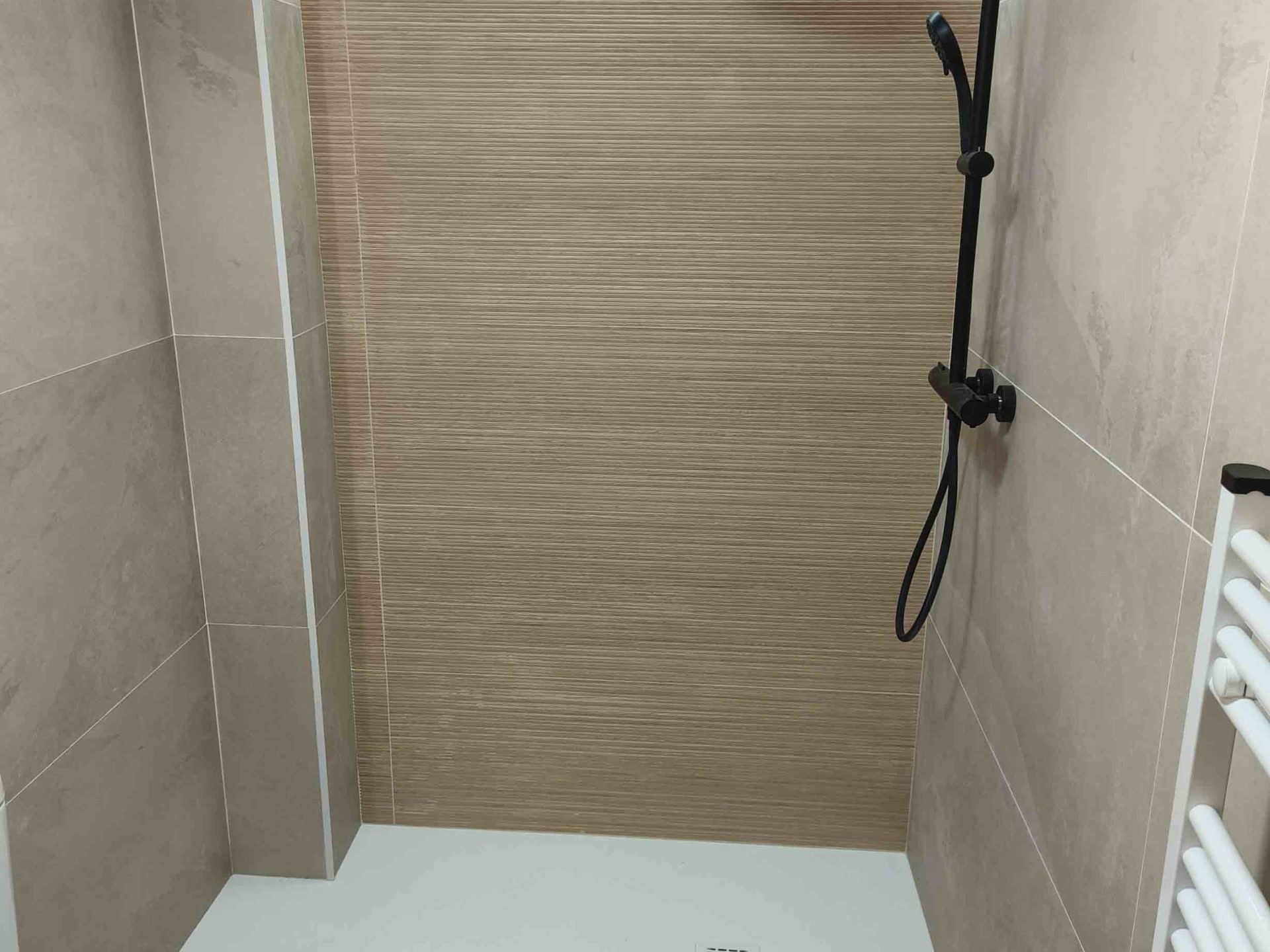 Reforma de baño con sustitución de ducha, trabajo para nivelado de suelo mejorando la accesibilidad y el aprovechamiento del espacio. Se han renovado revestimientos con un acabado neutro y continuo, combinando tonos piedra y textura en pared para aportar calidez. El resultado es un baño más cómodo, funcional y fácil de mantener, con una estética actual y bien integrada.