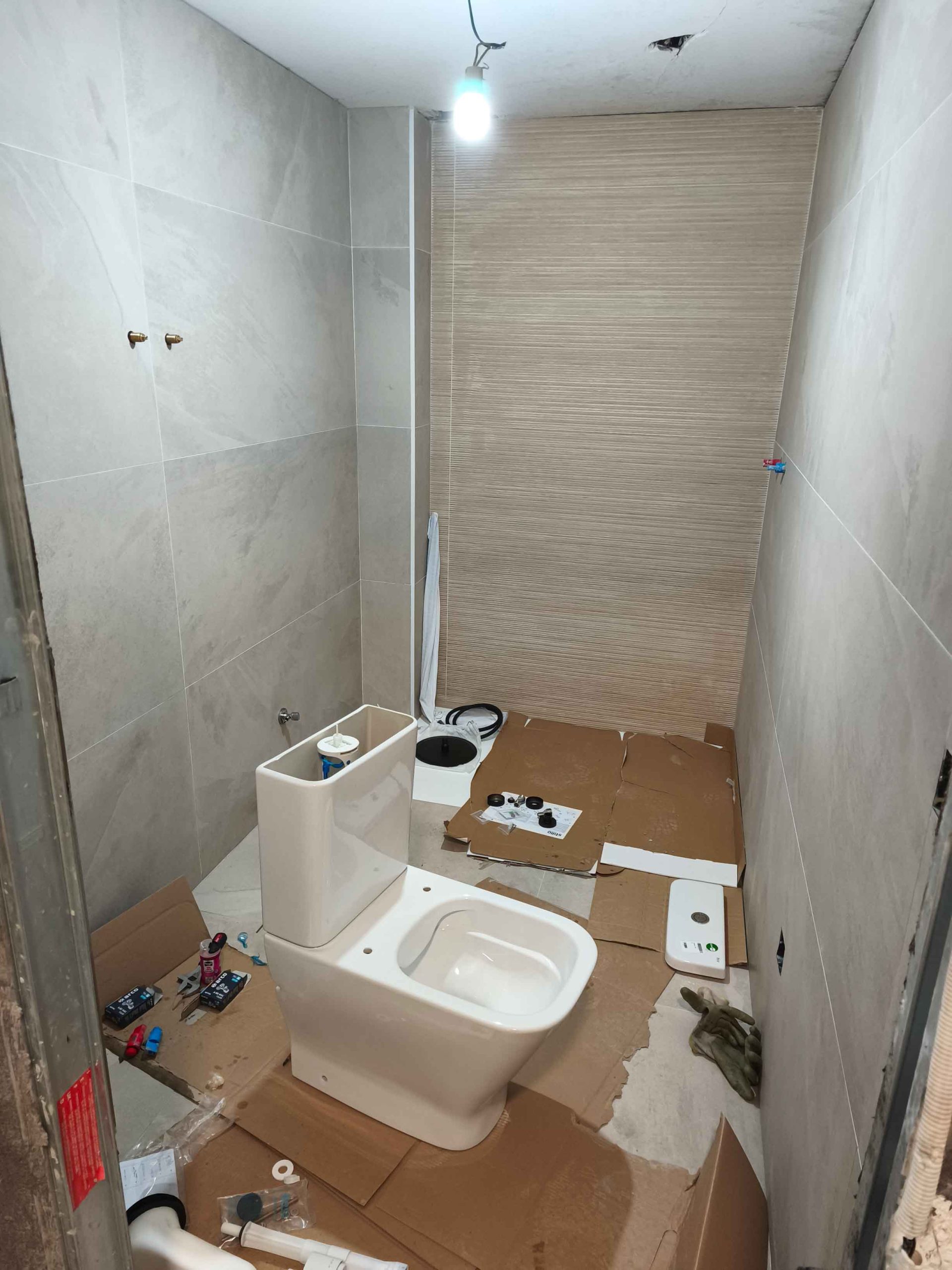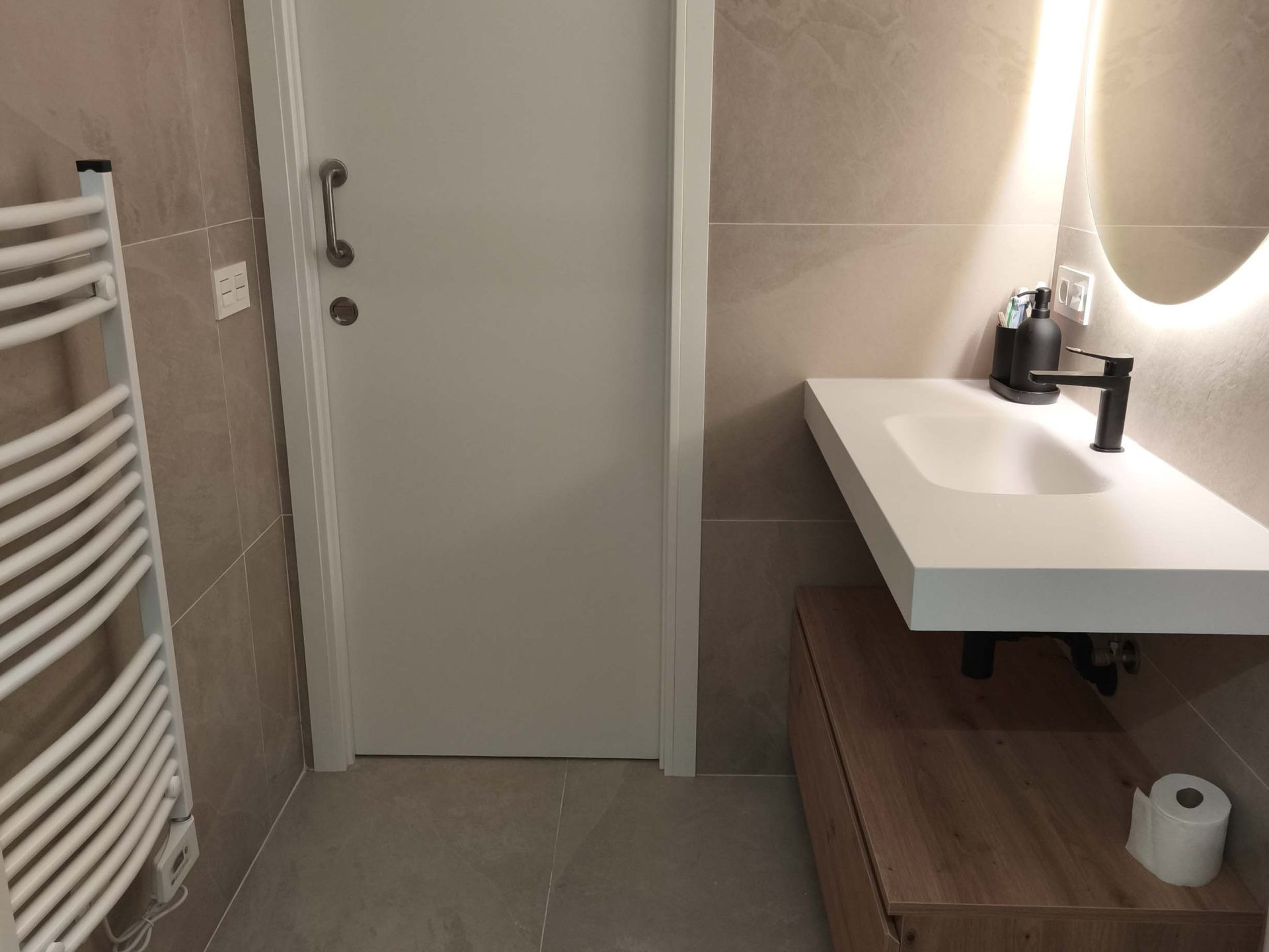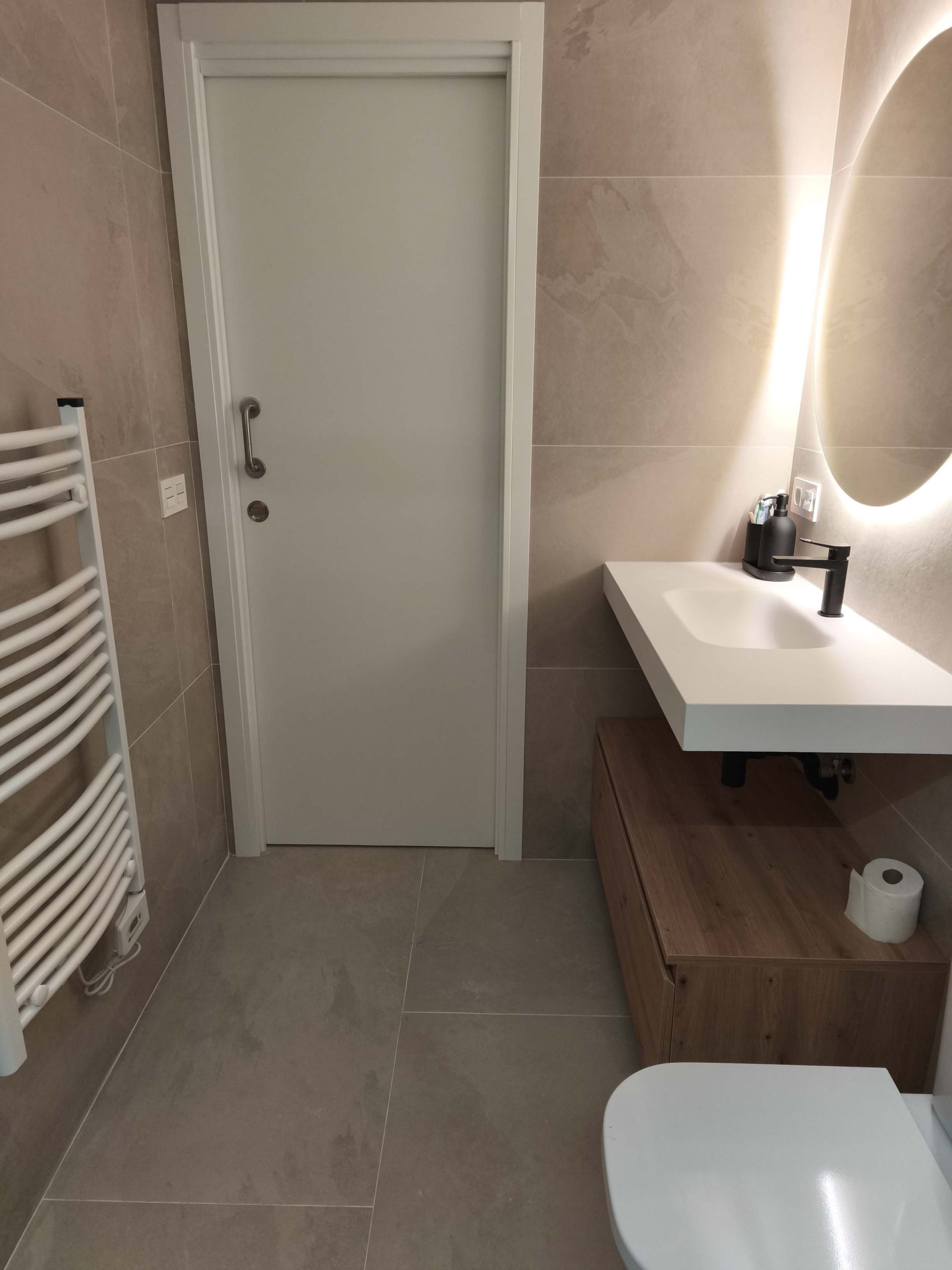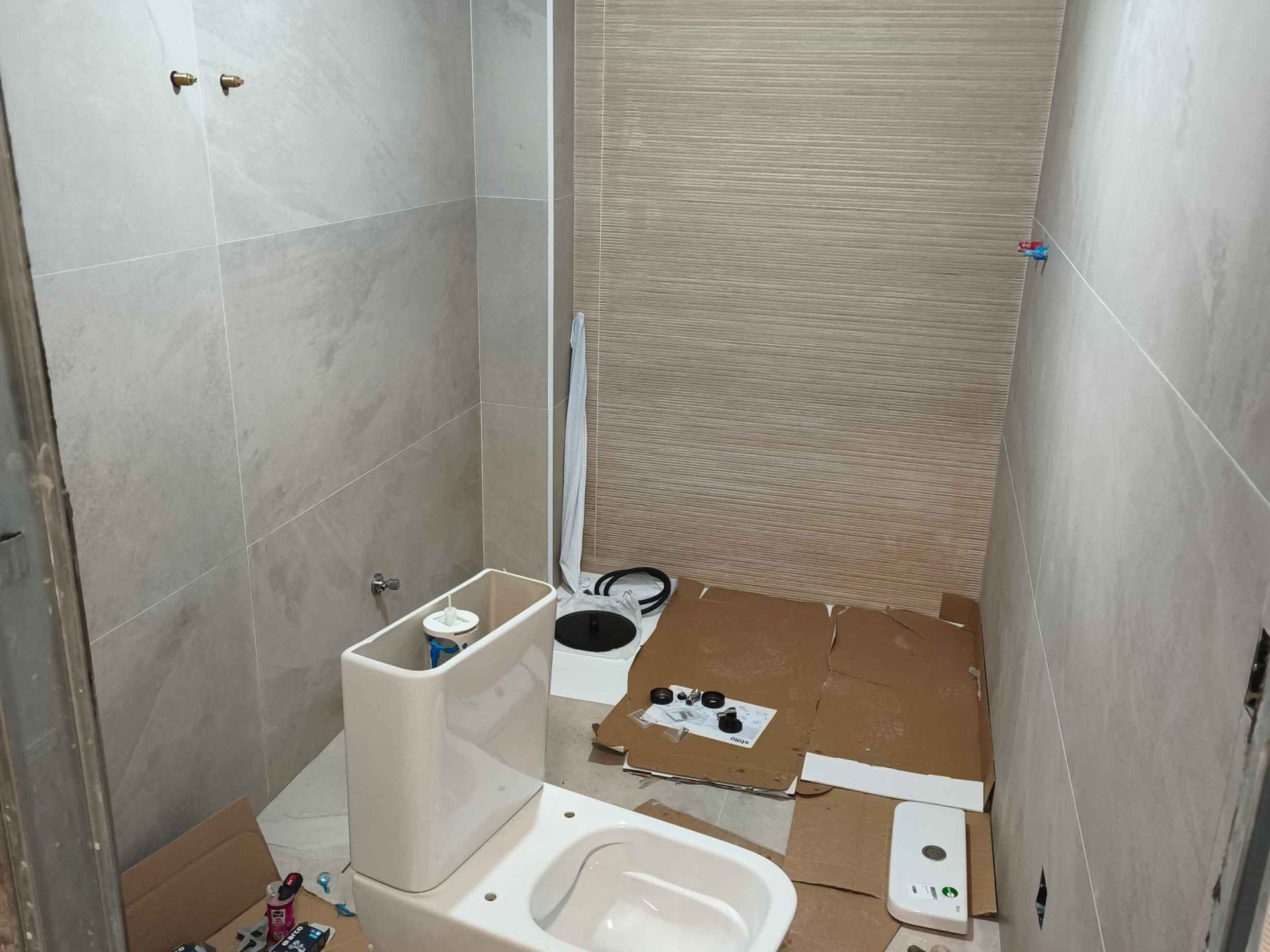 Reforma de baño con sustitución de ducha, trabajo para nivelado de suelo mejorando la accesibilidad y el aprovechamiento del espacio. Se han renovado revestimientos con un acabado neutro y continuo, combinando tonos piedra y textura en pared para aportar calidez. El resultado es un baño más cómodo, funcional y fácil de mantener, con una estética actual y bien integrada.